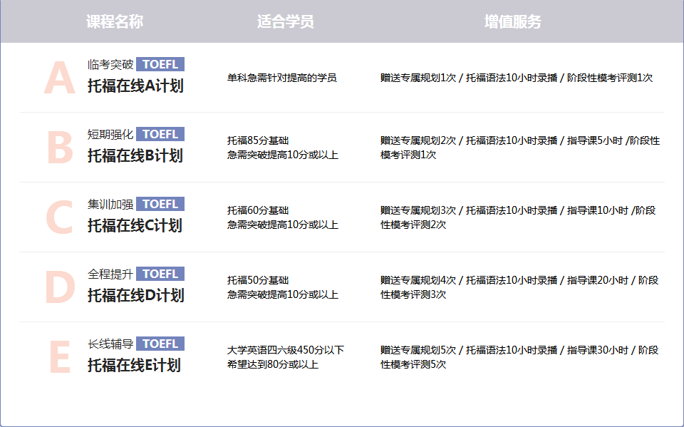 TOEFL定制强化班 |
